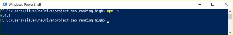 "npm-v"를 입력하고 엔터하면 아래 처럼 버전이 6.4.1 버전이 보입니다.