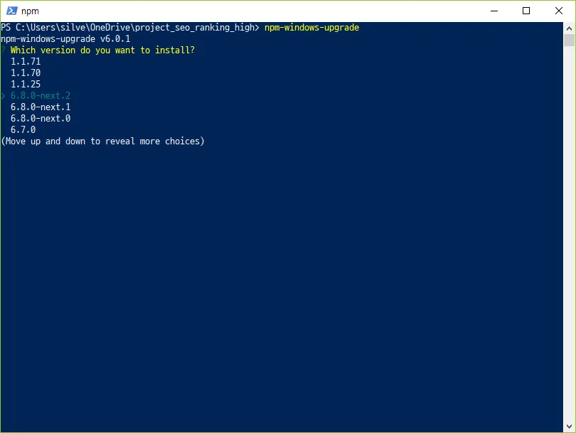 "npm-windows-upgrade" 입력 후 엔터 후 버전을 선택해 줍니다.