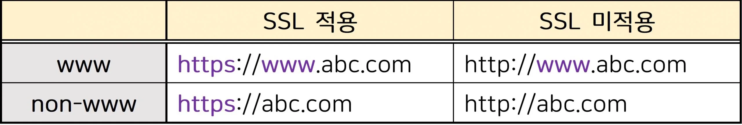 SSL 인증서가 있는 경우, https://로 시작하는 도메인을 선택하는 것이 좋습니다. 또한, 신규 사이트는 www를 제외한 도메인을 사용하는 것이 추천됩니다.