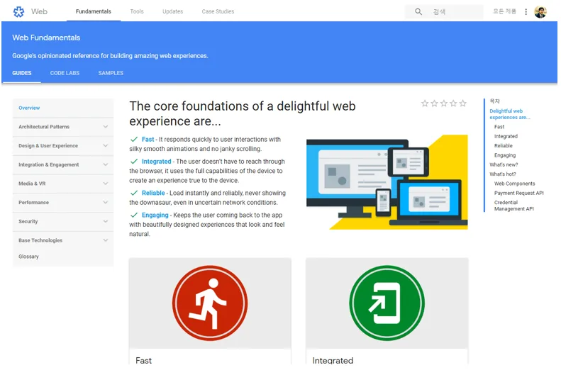 [구글의 웹의 가장 중요한 기본속성 4가지 = Fast, Intergrated, Reliable, Engaging]