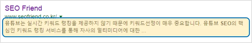 구글 검색결과에서 페이지를 방문하지 않고도 어떤 페이지인지 알 수 있도록 정보를 제공해 줍니다.