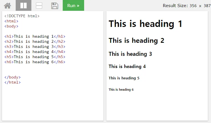 이때! 페이지의 구조를 크기순으로 배치하는것이 중요하며, H1 -> H6 태그의 순으로 크기와 중요도가 낮아집니다.